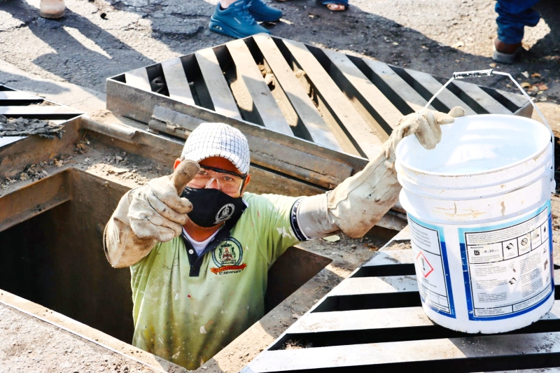 Asimismo, se hizo un llamado a la población a evitar tirar basura en la vía pública y mantener limpios los frentes de viviendas y negocios, ya que los desechos, principalmente plásticos, son una de las principales causas de taponamientos en la infraestructura hidráulica.