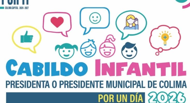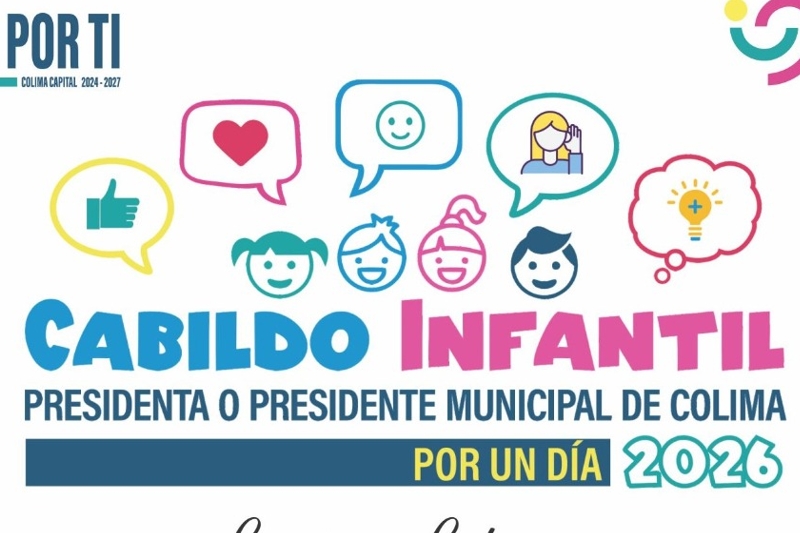 El Ayuntamiento de Colima realizará el Cabildo Infantil “Presidenta o Presidente Municipal por un día 2026” el próximo 29 de abril a las 18:00 horas, en el patio central del Palacio Municipal, como parte de las actividades por el Día de la Niñez.