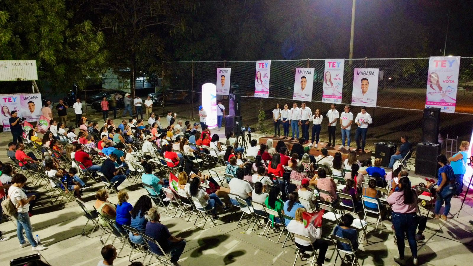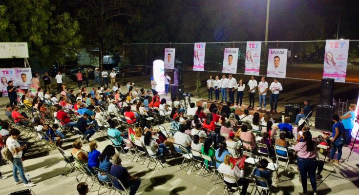 En la colonia Loma Bonita, en el arranque de la campaña electoral en el distrito electoral número 8, acompañaron a la abanderada de los partidos Revolucionario Institucional y Acción Nacional, el candidato a diputado local por esa demarcación, Héctor Magaña, e integrantes de la planilla de Tey Gutiérrez.
