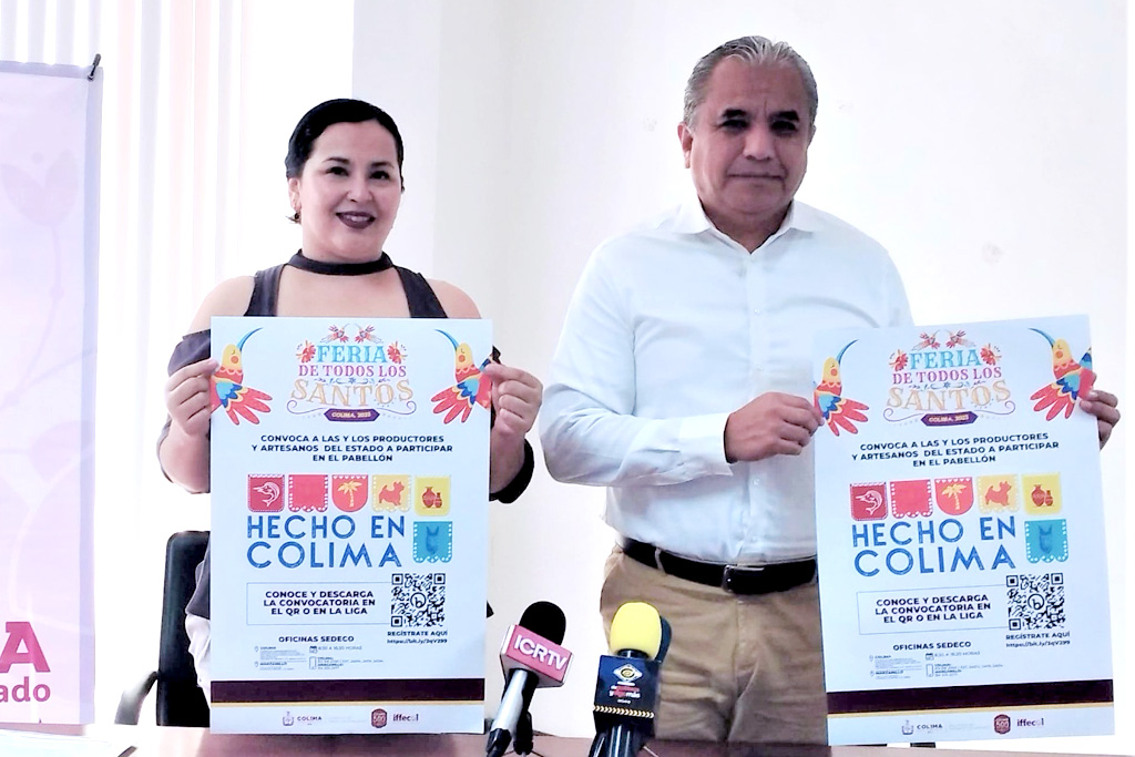 La Secretaría de Desarrollo Económico (Sedeco) del Gobierno del Estado de Colima presentó este lunes la convocatoria para participar en el pabellón ‘Hecho en Colima’ dentro de la Feria de Todos los Santos Colima 2023, que será un espacio de exposición para que artesanas, artesanos y empresas colimenses exhiben y comercializan sus productos, pues se busca impulsar a los sectores productivos de la entidad.