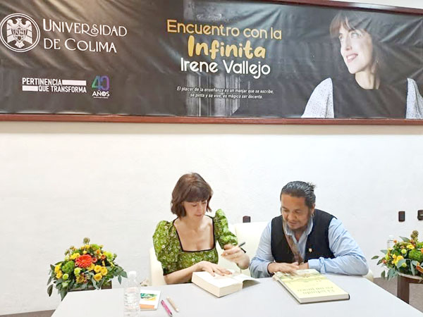 Jamás imaginé que la autora que disfruté años atrás estuviera en Colima, la pudiera ver y, sobre todo, oír… Conforme hablaba, en esta visita que tuvo en nuestra ciudad, recordaba pasajes del libro, de las columnas que he leído. Qué dicha este día, me voy con el corazón contento, tranquilo, de saber que hay poquita o mucha esperanza en la humanidad, que las cosas no se tienen que hacer al vapor, de rápido, que todo lleva un proceso y va poco a poco. Espero que con este doctorado, Irene Vallejo se sienta cobijada por una universidad pública y, sobre todo, deseo, añoro, que cumpla su sueño de ser catedrática en una universidad como la nuestra y, si fuera en la nuestra mejor qué mejor…