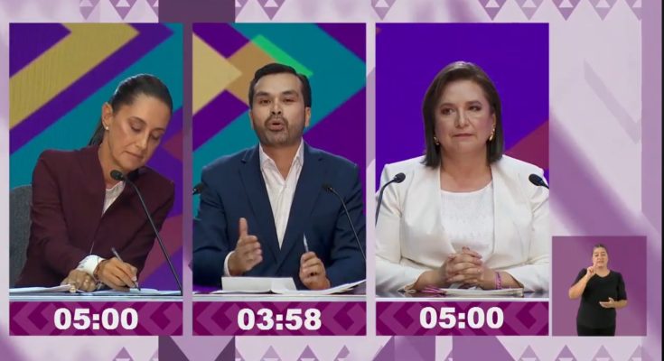 La primera, relacionada con la operación de los relojes, la cual se corrigió y se regresó el tiempo a la candidatura, lo que no resultó en una afectación sustancial en los tiempos de intervención de cada una. Ello ocurrió en la primera bolsa de tiempo del debate, en la cual la candidata Claudia Sheinbaum tuvo el uso de la voz durante 5 minutos 6 segundos, la candidata Xóchitl Gálvez 5 minutos con 1 segundo y el candidato Jorge Máynez 4 minutos 59 segundos.
